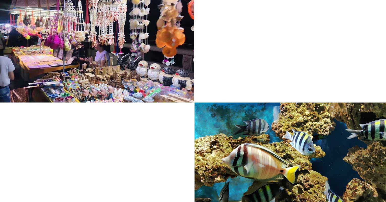 狂歡過后回到溫馨的酒店美美的睡一覺,第二天是自由活動日,大家可以毫無壓力的睡到自然醒,吃過早餐后,有的同事去體驗了浪漫的摩天輪,有的同事自由悠哉在小鎮上踩踩自行車,品嘗特色小吃,買買海鮮干貨。有的同事去游覽了海底世界,看那五彩斑斕的魚兒歡快地在珊瑚叢中游來游去,一群群的水母透過各種顏色柔和的燈頭,防如悠悠綠帶,飄飄渺渺,還有百龜池、海洋文化長廊、親親魚療池等。